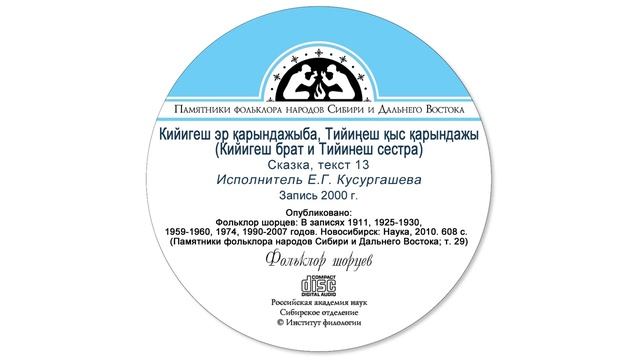 Кийигеш эр қарындажыба, Тийиңеш қыс қарындажы (Кийигеш брат и Тийинеш сестра). Сказка, текст 13. Исполнитель Е.Г. Кусургашева. Запись 2000 г. Опубликовано: Фольклор шорцев: В записях 1911, 1925-1930, 1959-1960, 1974, 1990-2007 годов. Новосибирск: Наука, 2010. 608 с. (Памятники фольклора народов Сибири и Дальнего Востока; т. 29).