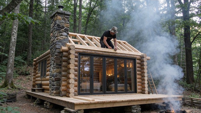 Строю бревенчатую хижину в лесу. Полный процесс (от начала до конца). Бушкрафт