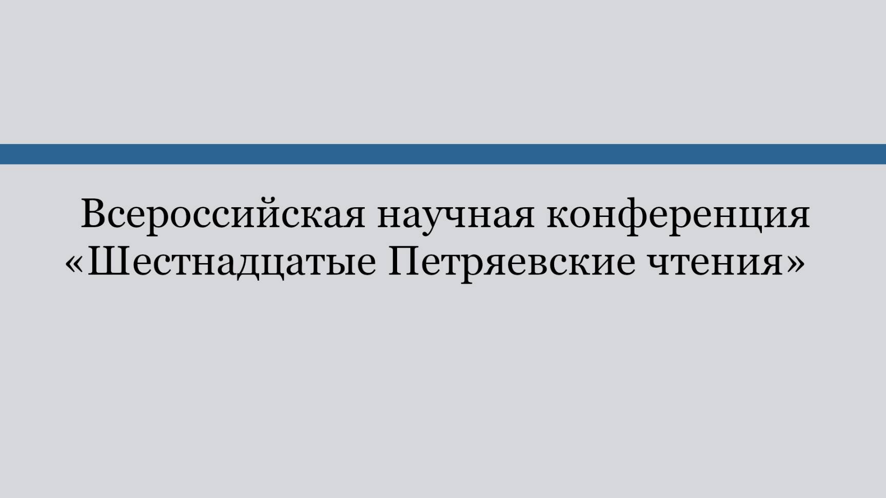 Всероссийская научная конференция «Шестнадцатые Петряевские чтения». Часть 2