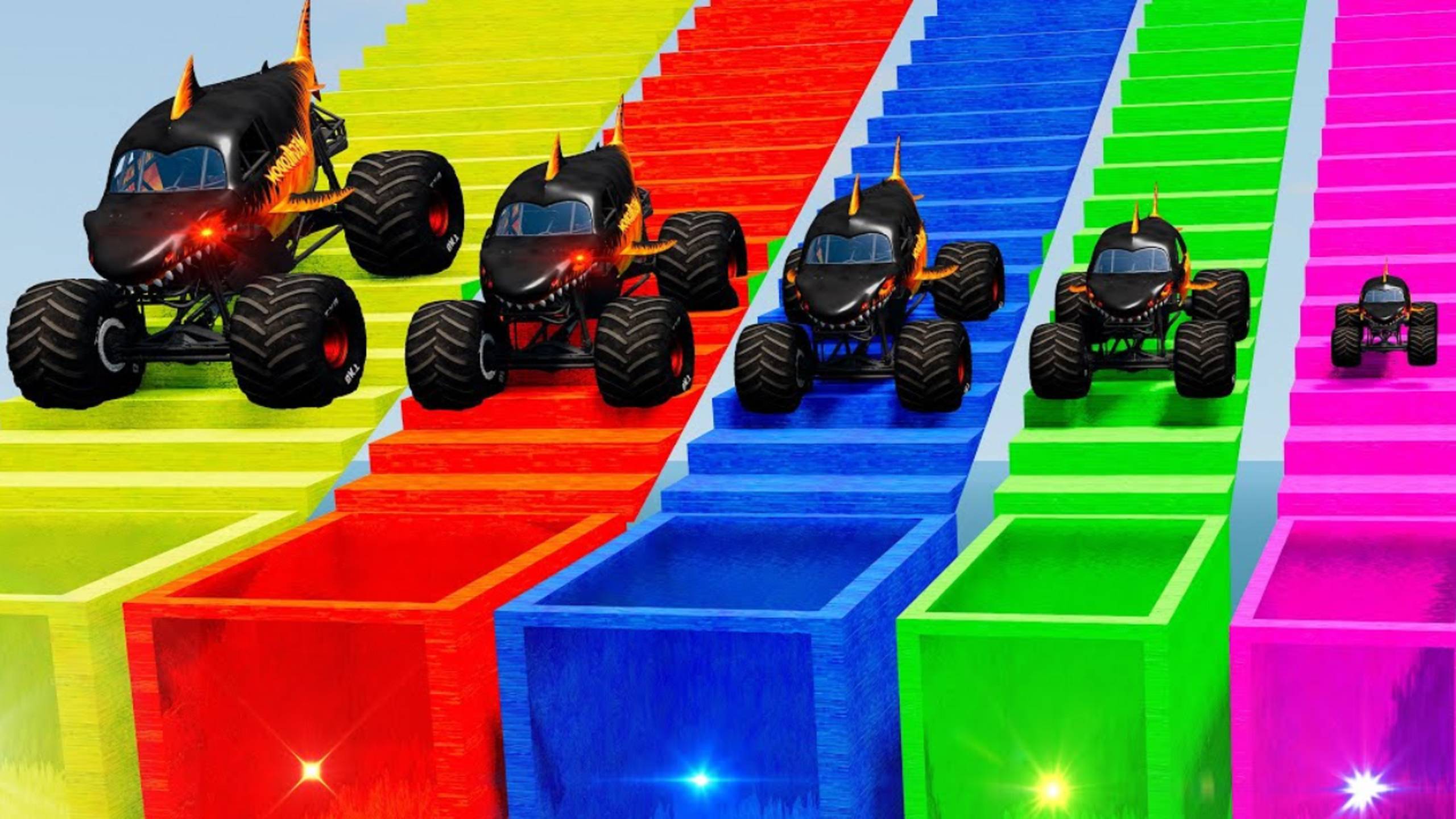 МУЛЬТИКИ ПРО МАШИНКИ 4К Большой и маленький монстр-трак против разноцветных порталов-ловушек в Бимке