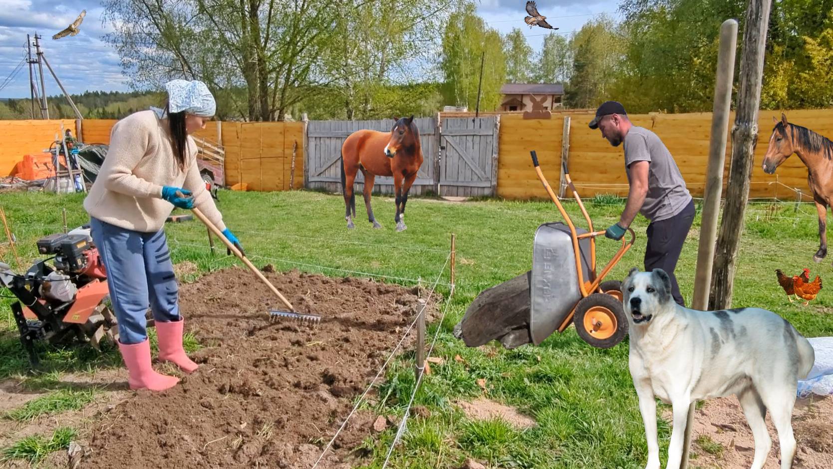 Заброшенный участок превращаем в мечту. Посадили сад и огород. Делаю огромный стол из бревен