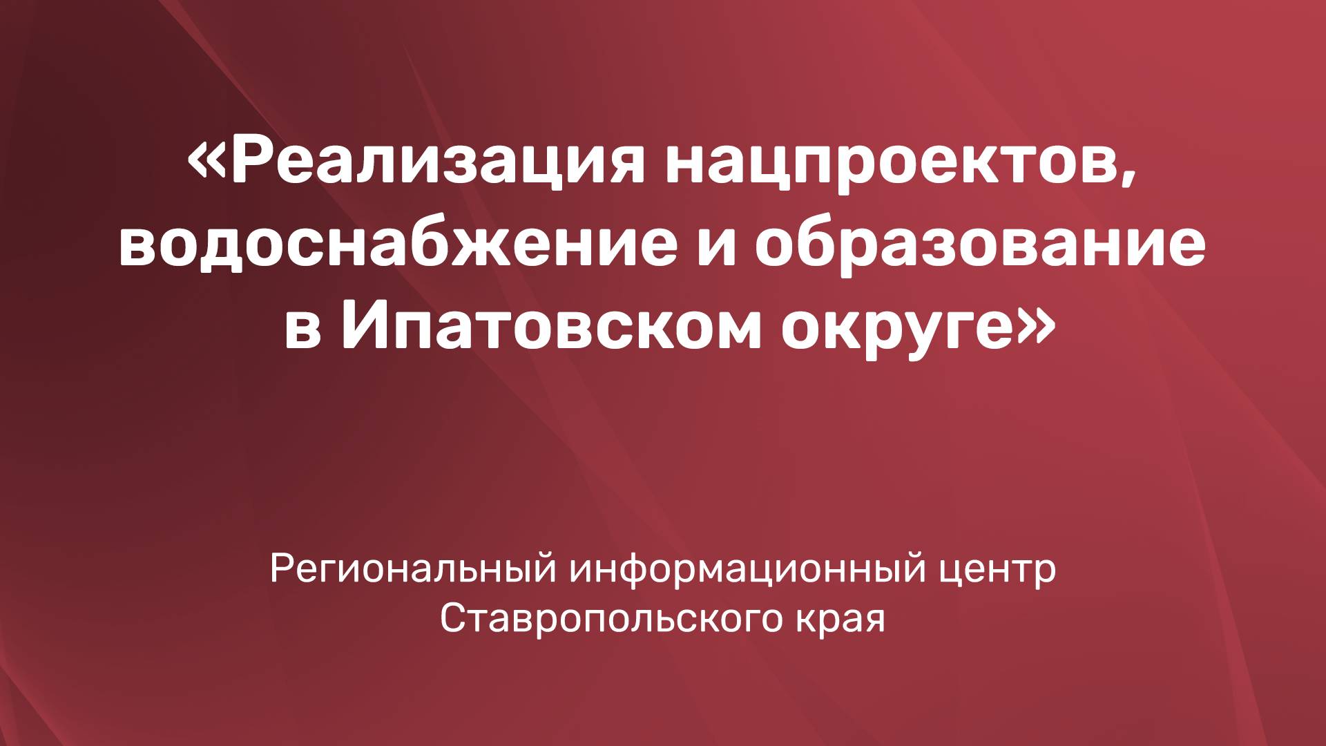 Реализация нацпроектов, водоснабжение и образование в Ипатовском округе