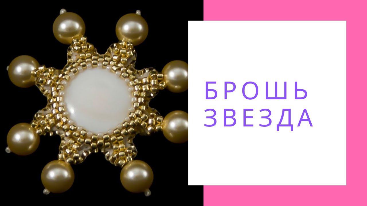 Брошь из бисера с камнем и жемчугом Сваровски Звезда. стильные броши. Брошь ручной работы купить