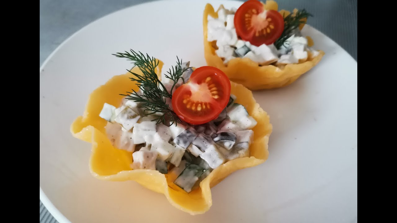 ПОДАЙТЕ САЛАТ НА ПРАЗДНИК ИМЕННО ТАК! Салат в сырных корзиночках. Простой салат с филе и огурцами.