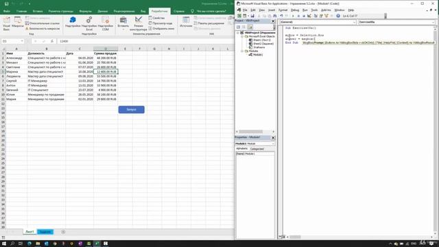 Упражнение 6-2.Решение. Важные инструменты. Программирование макросов в Excel.
