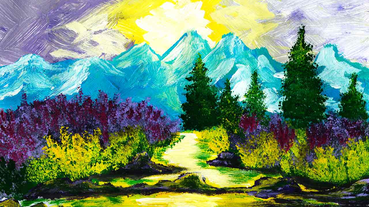 Как нарисовать красивый пейзаж. Как нарисовать горы гуашью. Как нарисовать легко пейзаж.