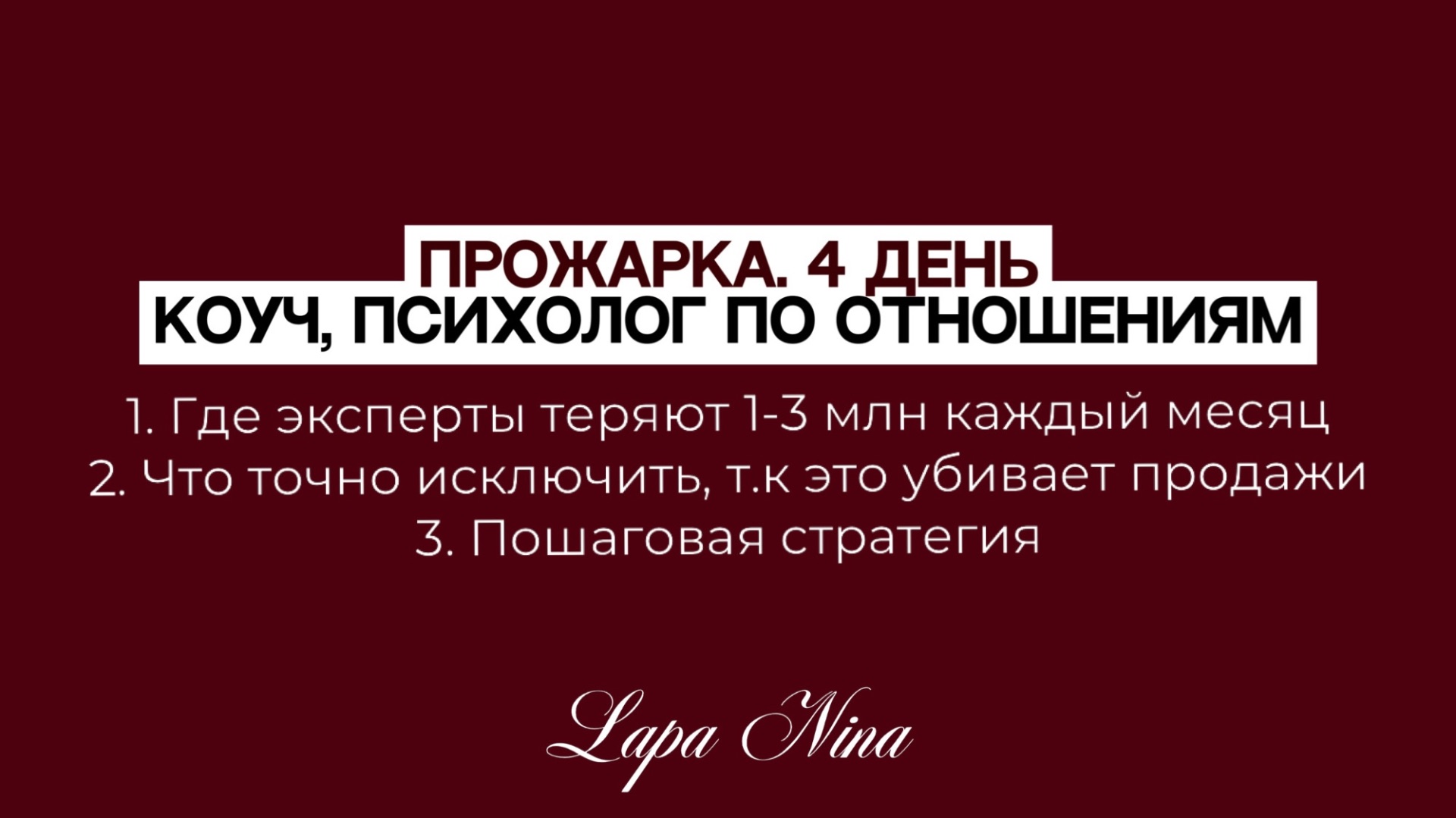 Прожарка. 4 день. Коуч, психолог по отношениям. Лапа Нина / Lapa Nina