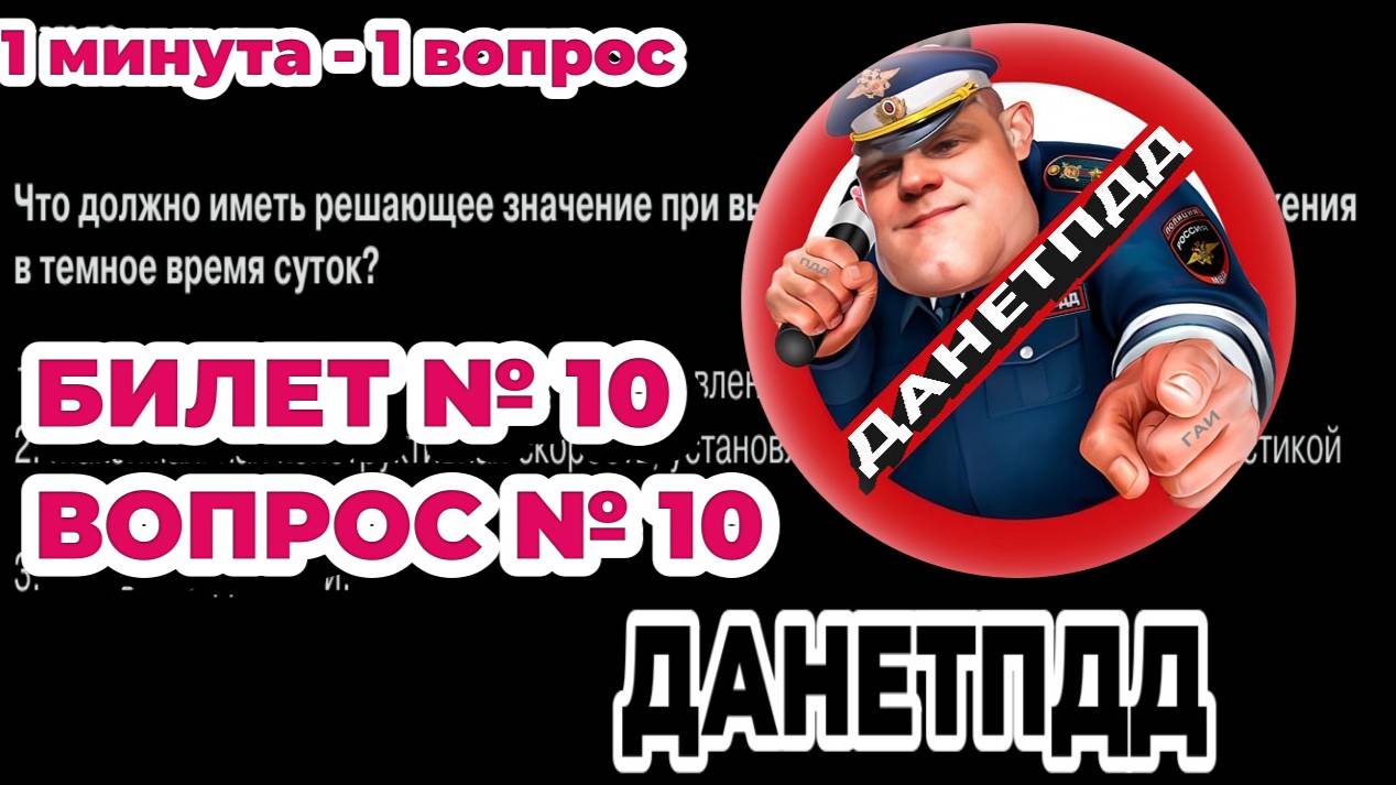Билет № 10. Вопрос № 10. Что должно иметь решающее значение при выборе водителем скорости движения в тёмное время суток? Решаем вопрос № 10 ПДД онлайн экзаменационного билета ГАИ № 10. ___________________________________________ 🔥 Вы можете поддержать канал по ссылке: https://clck.ru/3FeMWH ___________________________________________ ✅ ДАНЕТПДД в социальных сетях: YouTube: https://youtube.com/@danetpdd Rutube: https://rutube.ru/channel/51400104/ VK Видео: https://vkvideo.ru/@club228759945 Телеграм: https://t.me/danetpdd