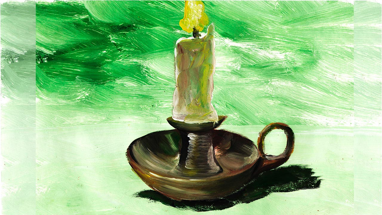 Как нарисовать натюрморт. Рисуем горящую свечу. Натюрморт гуашью. Правополушарное рисование.