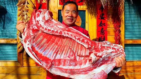 Отбивная из баранины в тесте ручной работы! Готовим в больших горшочках, очень вкусно. Китай