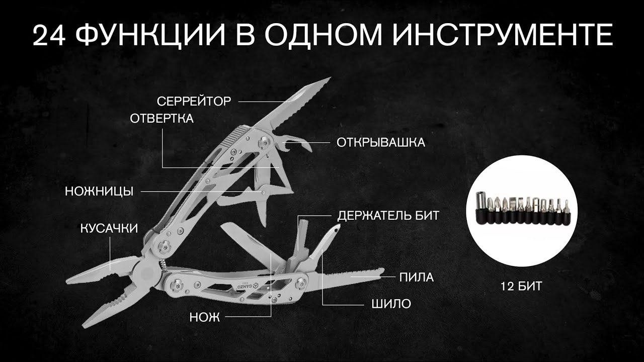 Стильный мультитул G202от компании Ganzo. Модель имеет продуманный дизайн и большой набор инструментов. В комплект входят следующие предметы: подпружиненные плоскогубцы с кусачками, два лезвия, одно из которых имеет серрейторную заточку, плоская отвертка небольшого размера, ножницы, ножовка по дереву, зенковка, удлинитель адаптера для бит открывалки для бутылок и консервов. Все инструменты изготовлены из нержавеющей стали 440С. Также в комплект мультитула G202входит набор бит из углеродистой стали. В набор, помимо адаптера, входят 3 плоских отвертки, 3 крестовых отвертки, 3 шестигранных ключа. В комплект входит чехол из синтетической ткани для переноски мультитула и бит на поясе. Кол-во инструментов: 24 Материалы: 440C нержавеющая сталь, Размер в сложенном сост.: длина: 10.5 см, ширина: 5 см, Толщина: 1.8 см Вес: 270 г. Функции: -кусачки -плоскогубцы -маленькая отвертка плоская -нож -нож с зубчатым лезвием -открывалка для бутылок -консервный нож -ножницы -для снятия изоляции -пила -шило -держатель бит -12 отверток (сменные насадки в комплекте) Эта модель будет отличным вариантом для походов, охоты, незаменимым инструментом в Вашей машине\квартире. Благодаря крепкому сплаву обладает большим ресурсом эксплуатации и надежности. Подробные характеристики и актуальную цену можно найти на нашем сайте ► https://avantmarket.ru/multitul-ganzo-g202/ Если у вас возникнут какие-либо вопросы или потребуется дополнительная помощь, пожалуйста, не стесняйтесь обращаться к нам. Мы всегда готовы помочь вам и сделать ваш опыт взаимодействия с нами еще более приятным. Наши контакты: https://avantmarket.ru/ Общие вопросы: info@avantmarket.ru По вопросам продаж: sales@avantmarket.ru Номера для связи: +7 (499) 553 04 15 +7 (931) 009 32 83