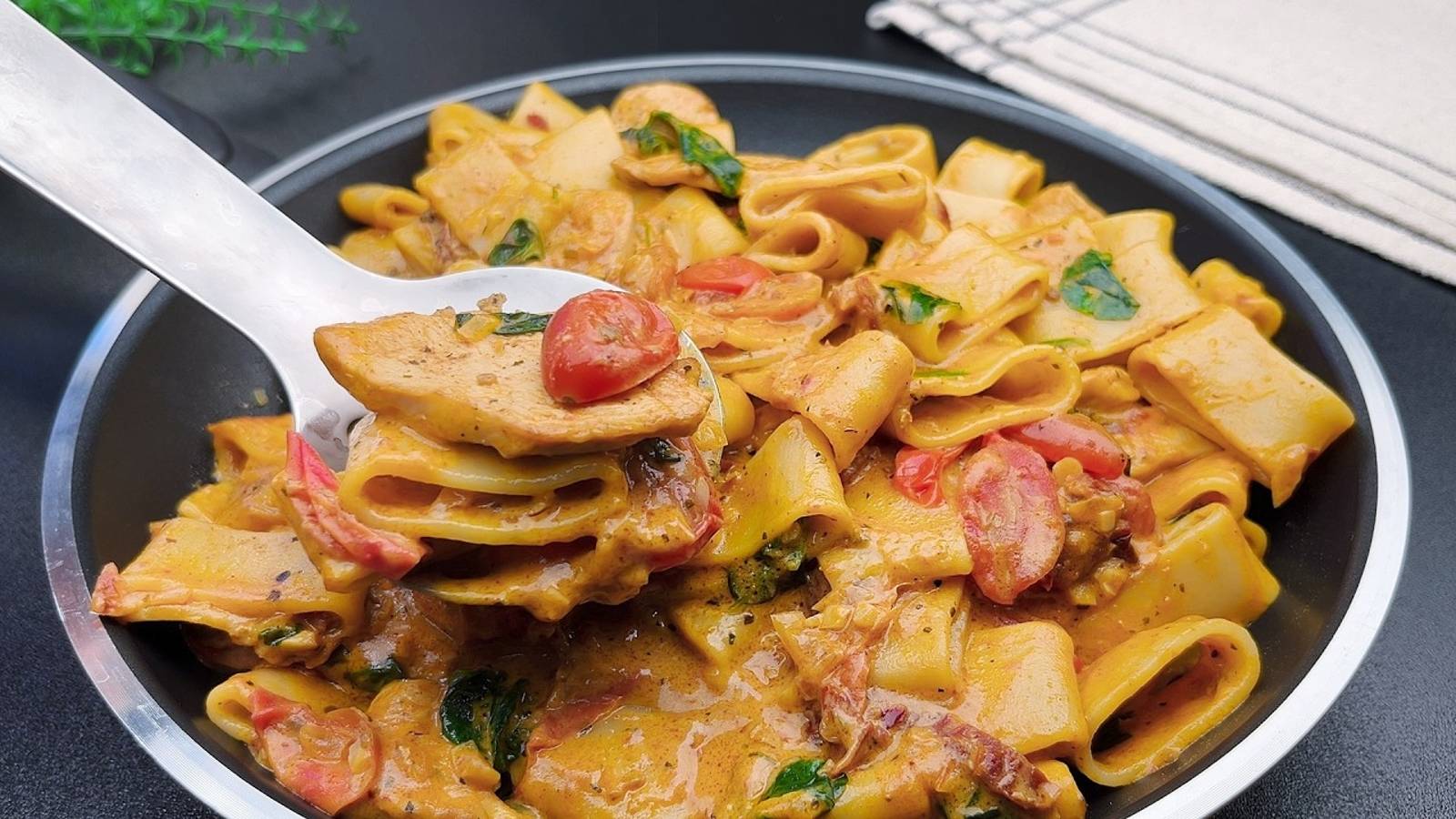 Как приготовить макароны с курицей в сливочном соусе? 2 простых рецепта с насыщенным вкусом и за пару минут! Для идеального ужина! Друзья, привет! Сегодня поделюсь рецептом, который спасет ваш вечер, – макароны в сливочно-томатном соусе. Этот вариант невероятно прост и займет всего несколько минут, а результат – нежнейшие макароны с соусом, который обволакивает каждый кусочек. Мы объединим сливочный крем и томатную основу, добавим специи и секретный ингредиент для усиления вкуса. Поверьте, макароны с курицей в сливочном соусе или просто с томатной ноткой – это беспроигрышный вариант, когда хочется чего-то особенного без лишних усилий. Все готовится на сковороде, так что минимальная посуда – минимальная уборка! Идеальный ужин для всей семьи: макароны с соусом, который понравится каждому, а благодаря сливочно-томатной текстуре ваши близкие точно попросят добавки. Не пропустите шанс разнообразить свое меню этим вкусным и простым рецептом! 1-й РЕЦЕПТ Паста с курицей и помидорами в сливочном соусе 1 куриная грудка соль черный перец 10 зубчиков чеснока 1 луковица 1 столовая ложка томатной пасты 300 г (10,6 унций) помидоров черри 150 мл (5,3 жидких унций) белого сухого вина 60 г (2 унции) вяленых помидоров 250 мл (8,8 жидких унций) сливок 120 г (4 унции) пармезана (60 г + для начинки) несколько веточек петрушки 250 г (8,8 унций) макарон горсть шпината 1 ч.л. итальянских трав 1/2 ч. л. хлопьев чили 1 чайная ложка паприки оливковое масло 2-й РЕЦЕПТ Паста с говядиной и пармезаном 400 г говяжьего фарша соль 1/2 ч. л. 1/3 ч. л. черного перца 1 фиолетовая луковица 1 столовая ложка томатной пасты Горсть базилика 30 г грецких орехов 1 зубчик чеснока 100 мл сливок 3 столовые ложки оливкового масла первого отжима. 250 г пасты пенне чеснок 50 г пармезана оливковое масло 1 зубчик чеснока макароны с курицей в сливочном соусе, макароны с сливочным соусом, макароны с соусом, макароны с соусом на сковороде, макароны с томатным соусом,
