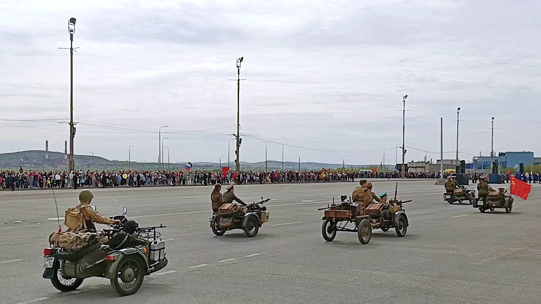 Праздничный парад Победы, в день Победы, на площади Торжеств, по проспекту Ленина, в Правобережном районе города... Магнитогорск, 9 мая 2022 года... Сбор донатов на видео-прогулки, https://yoomoney.ru/to/41001562873753 или https://www.donationalerts.com/r/spaceminator77