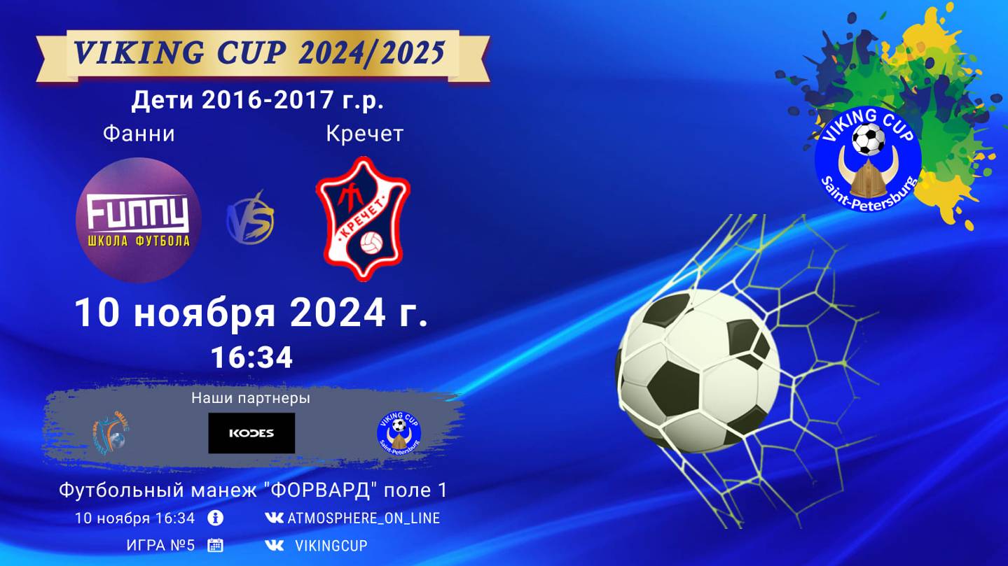 VIKING CUP среди команд 2016-2017 г.р. (U7-U8), Поле 1 10 НОЯБРЯ 2024 САНКТ-ПЕТЕРБУРГ, ФЦ "Форвард" ФК "Фанни" - ФК "Кречет"/VIKING CUP, Игра №5, 10-11-2024 16:34