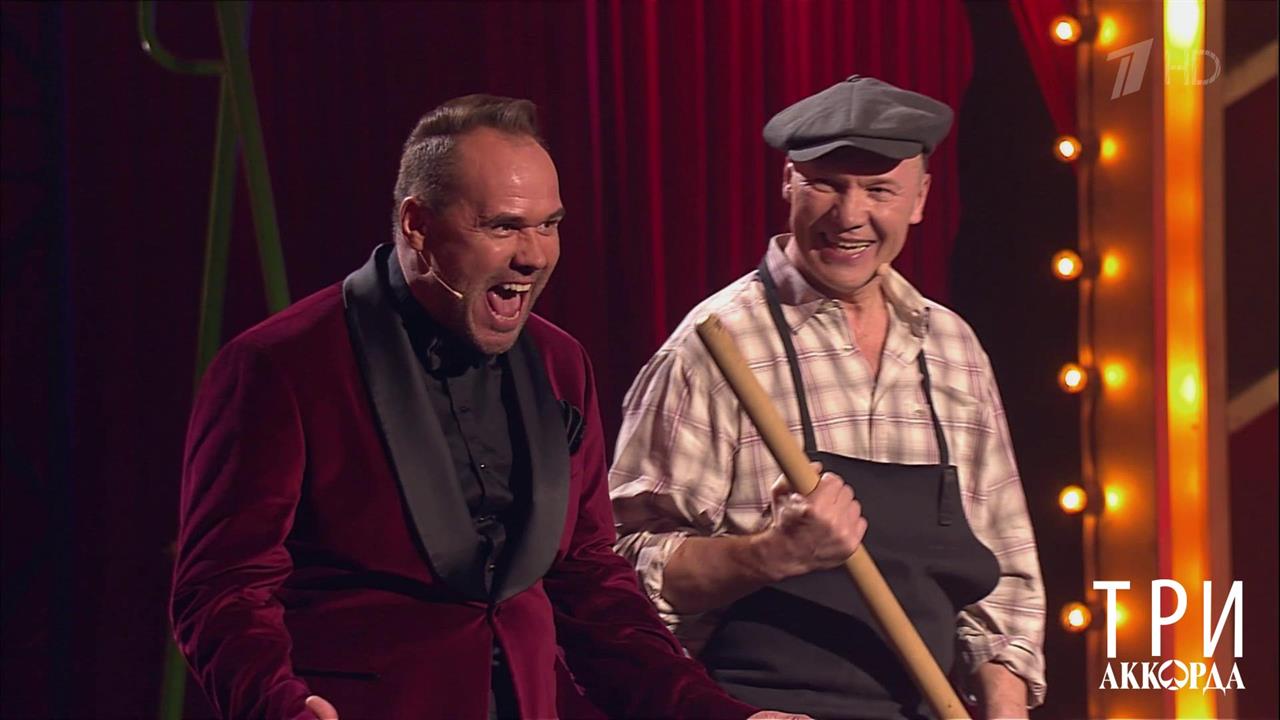 Первый канал представляет новый сезон народного шоу «Три аккорда», где поют авторскую песню и где звучит самая душевная музыка. «Три аккорда» - это конкурс и одновременно тематические концерты, где исполнители представляют на суд зрителей собственные интерпретации знаменитых шлягеров. Ведущий – Максим Аверин. Участники нового сезона шоу «Три аккорда»: Николай Фоменко, Валентина Легкоступова, Стас Пьеха, Екатерина Семенова, Юлия Савичева, Денис Клявер, Ксана Сергиенко, Анатолий Журавлев, Алла Рид и Интарс Бусулис. В пятом выпуске в новом прочтении участников звучат песни: «Отвали», «Песня Синеглазки», «Город Сочи», «За окошком месяц май», «Я вернусь», «Леха», «Цыпленок жареный», «Всюду деньги», «Я вышла на Пикадилли» и «Скрипач ростовский Моня». Члены жюри - Александр Новиков, Лидия Козлова, Сергей Трофимов и Вика Цыганова. Специальные гости выпуска - Лолита и Стас Михайлов.
