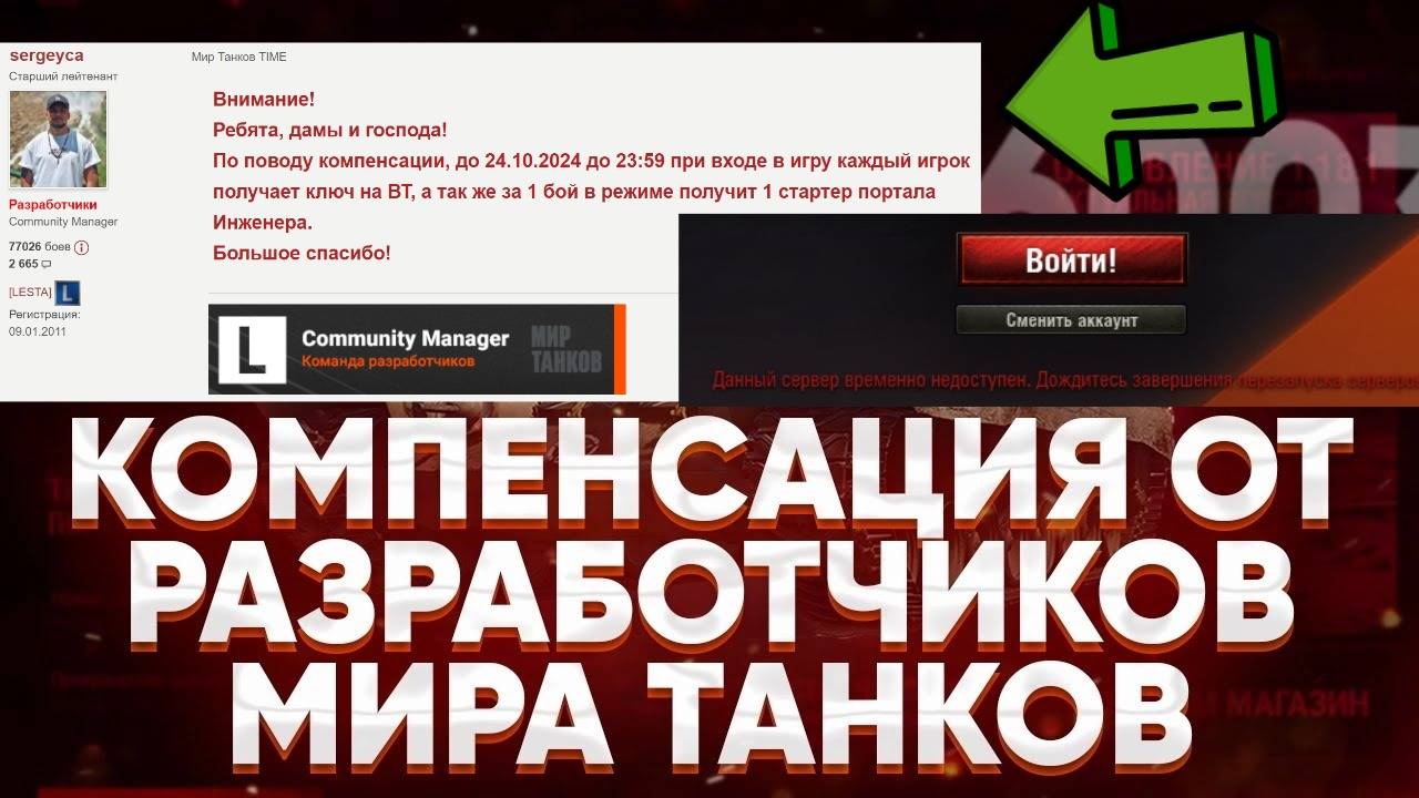 Танкисты! Вечером 23 октября были трудности с авторизацией в игре из-за проблем в датацентре. Мы благодарим вас за терпение и понимание! В качестве компенсации за неудобства, дарим каждому ключ для игры на Waffenträger за вход в игру и стартер Инженера за один бой в режиме «Ваффентрагер: вызов». Вы сможете получить награды до 23:59 (МСК) 24 октября. Ещё раз спасибо и удачи!