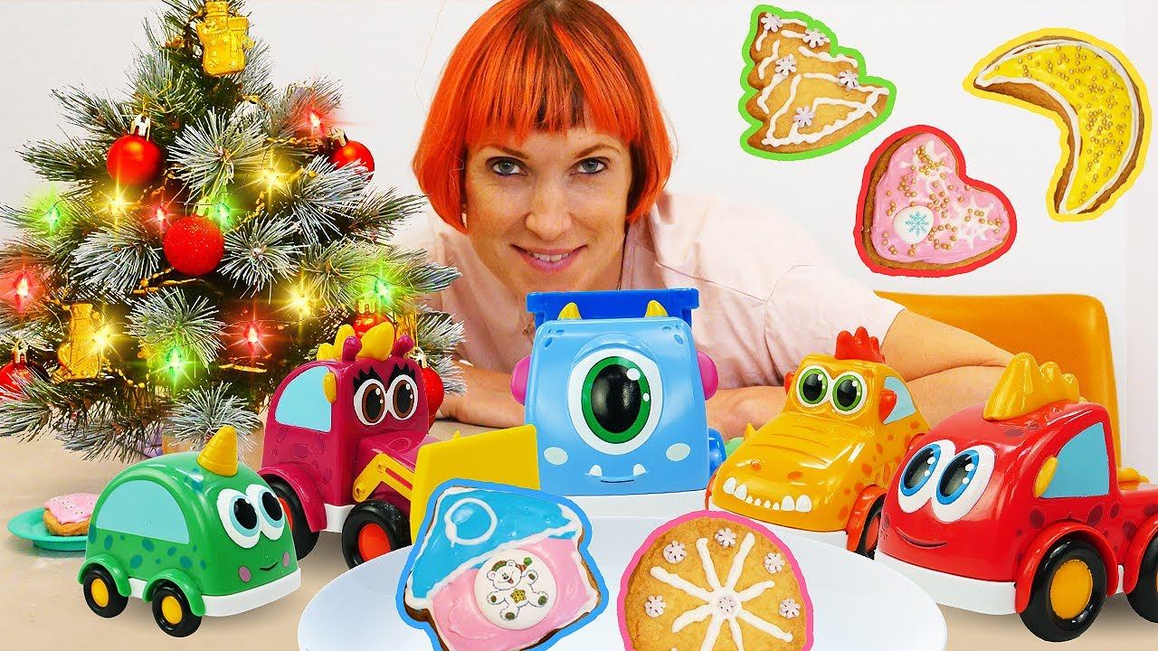 Маша Капуки Кануки и машинки Мокас на кухне: Готовим вместе печенья на Новый Год! Видео для детей