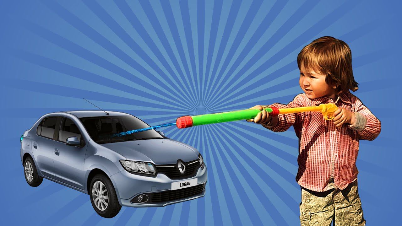 Мальчик моет машину водяным пистолетом \ Boy washing a car with a water pistol МанкитуИгры#1
