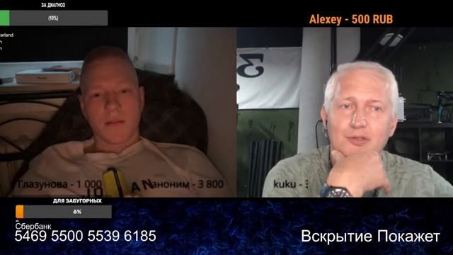 За диагноз: Сбербанк РФ: 5469 5500 5539 6185 https://live.vkplay.ru/vskrutiepokazhet https://t.me/VskrytiePokazhetOfficial https://rutube.ru/channel/18886569/ https://vk.com/id821374653