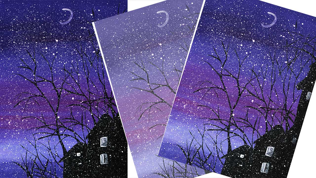 Нарисуем зимний пейзаж легко. Рисуем зимний пейзаж в городе. Правополушарное рисование.