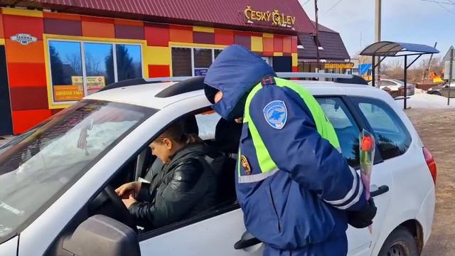 В преддверии празднования Международного женского дня сотрудники ОГИБДД по Советскому району провели традиционную акцию "Цветы для автоледи".