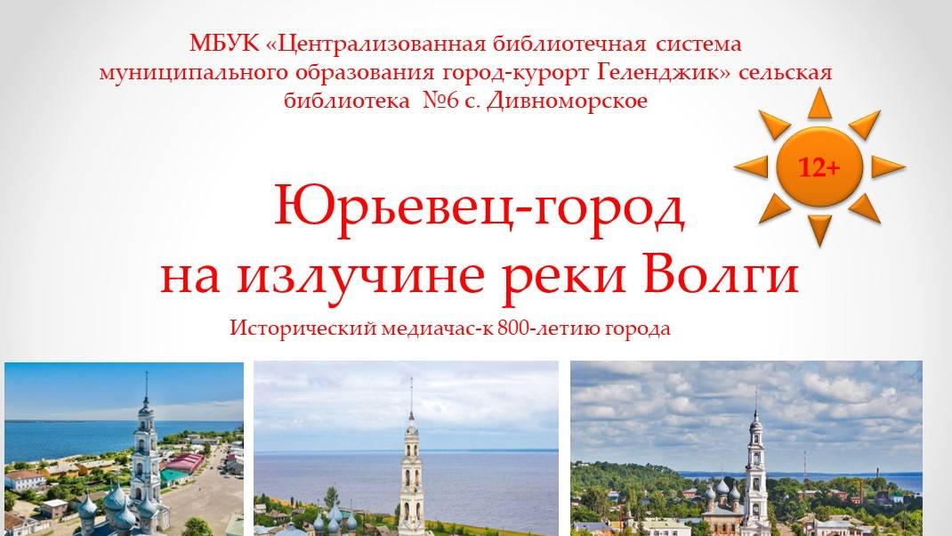 В сельской библиотеке №6 с. Дивноморское прошёл исторический медиачас «Юрьевец –город на излучине реки Волги» к 800-летию города. Юрьевец — один из старейших городов не только Ивановской области, но и всей России. 800-летие города отличный повод познакомиться с его историей и увидеть своими глазами сохранившийся кусочек России передвижников и первых промышленников. Город, с которым связаны жизни многих и многих талантов земли русской. #ЧитающийГеленджик, #БиблиотекиГеленджика