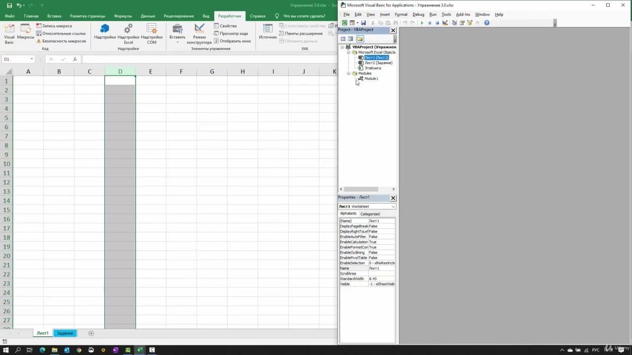 Упражнение 4 Решение. Свойства ячейки. Программирование макросов в Excel.
