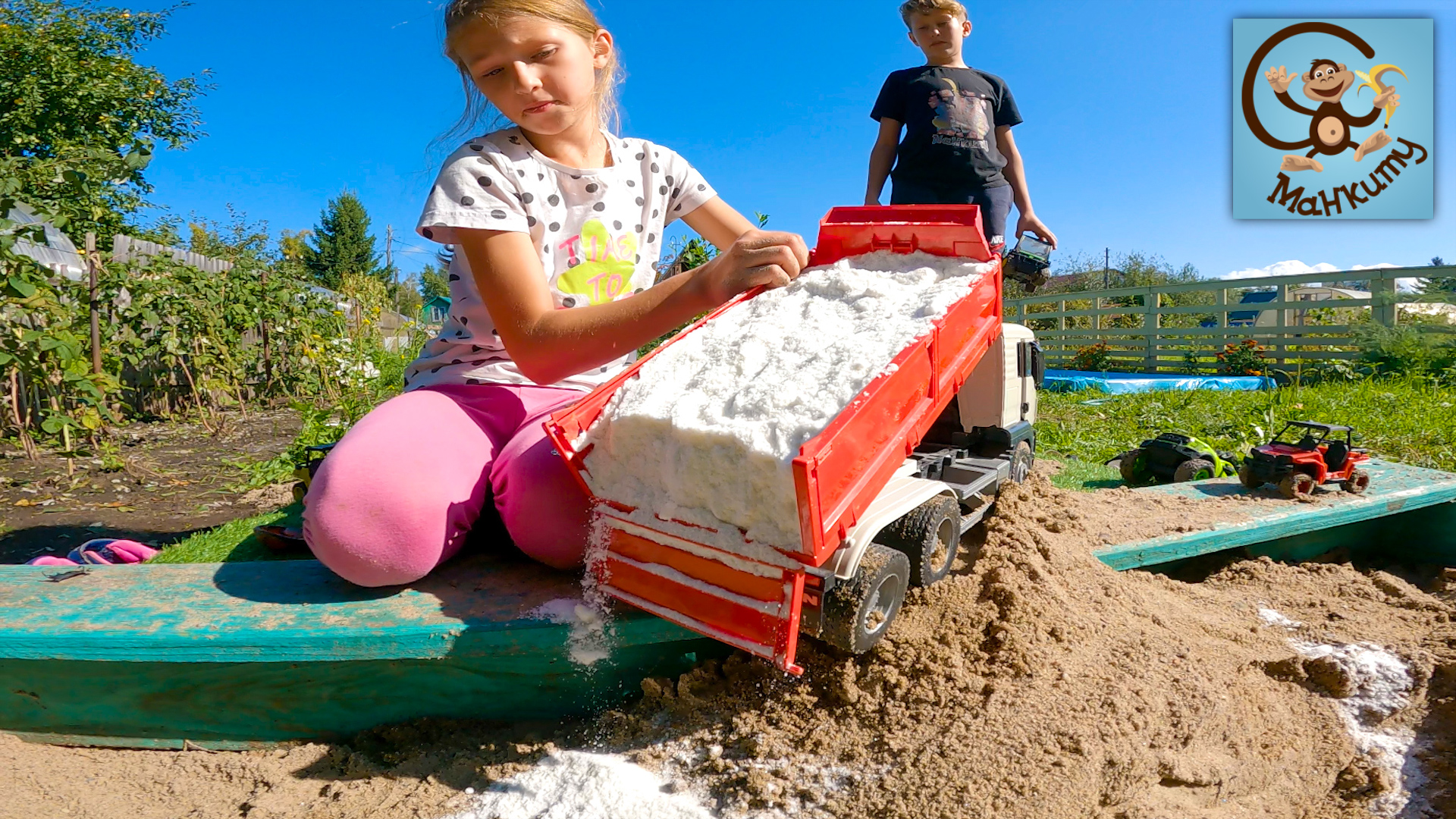 Диана и Даня делают речку для Машинок Игрушек. Манкиту