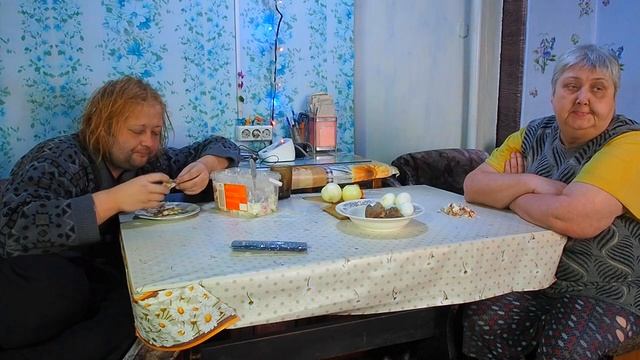 Деревенское утро и вкусный завтрак с килькой и праздничным салатом в деревне ДРУЖНАЯ СЕМЬЯ и деревня