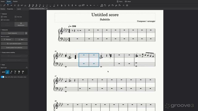 📁 Groove3 MuseScore Studio Explained 🎬 08. Inserting and Removing Measures See how to add or remove individual or multiple measures from either specified location, beginning, or end of score. Playlist: https://rutube.ru/plst/900000 #MuseScore | #Notation | #Composition | #Groove3