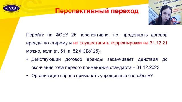 Вебинар «ФСБУ 25. Бухгалтерский учет в 2022 году» Лектор: специалист компании Микос Потапкина Ирина Программа вебинара: Особенности перехода на ФСБУ 25 в 1С Как в 1С лучше переходить на ФСБУ 25, перспективно или альтернативно? Схема по переходу на ФСБУ 25 Можно ли перейти на ФСБУ 25 перспективно, если есть право на применение упрощенных способов БУ? Нужно ли применять ФСБУ 25 к договору аренды и лизинга в 2022 году? Можно ли не применять ФСБУ 25? По вопросам внедрения и обучения программе 1С - обращайтесь в нашу компанию - наши специалисты с удовольствием вам помогут! Компания «Микос» осуществляет продажу программ 1С в Челябинске. Цель нашей компании: используя программы 1С, делать жизнь бухгалтера и руководителя в России более легкой, а работу компаний - более эффективной. Наш сайт: https://vk.cc/c0Bixf ❓Хотите получить консультацию по 1С? Звоните по телефону: 8 (351) 225-64-04. Также Вы можете связаться с нами по WhatsApp / Viber / Telegram: 8-9000-23-09-52 Адрес: Челябинск, ул. Энтузиастов, д. 28а, 1 этаж Работаем дистанционно по всей России. Пишите нам в Telegram! Ссылка: @Mikos1C_bot Ставьте лайк и подписывайтесь на наш канал, чтобы быть в курсе выхода новых видео! Вконтакте: https://vk.com/mikos1c Телеграм Микос: https://t.me/mikos_company Одноклассники: https://ok.ru/mikos.programmy1s Яндекс Дзен: https://zen.yandex.ru/mikos_programmy1c Если Вам нужно получить ответ на вопрос по работе в программе 1С, напишите свой комментарий - мы ответим! #1С #программы1С#ФСБУ