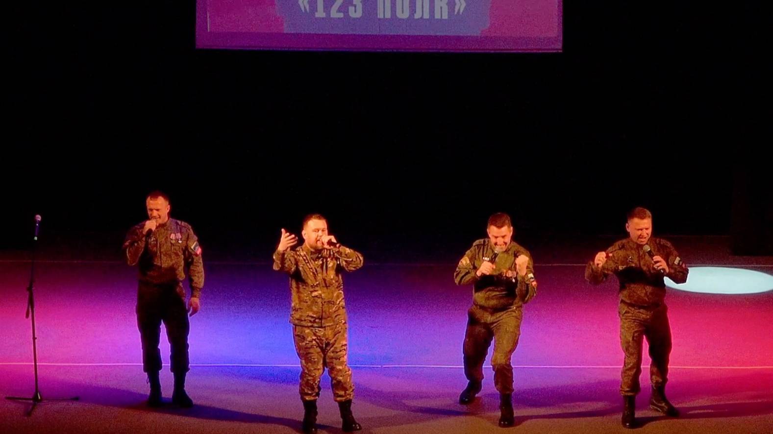 Группа «123 полк» собрала в себе военнослужащих, принимавших участие в боевых действиях на Донбассе. Название выбрано неслучайно − солисты Луганской филармонии, вошедшие в эту группу, служили в 123 стрелковом полку Народной милиции во время Специальной Военной Операции. Участники коллектива «123 полк», простые рядовые пехотинцы, прошли через огонь и воду. С участием в освобождении Мариуполя и наградами за отвагу на поле боя, они продолжают свой боевой дух на сцене, под руководством Ивана Коломойцева (продюсер и директор группы). Группа «123 полк» впечатляет своим разнообразным репертуаром, но если выбирать визитную карточку, то, безусловно, это композиция «Наши голоса».