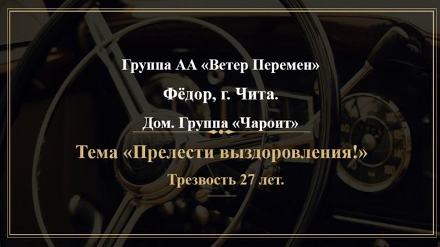 Фёдор. г. Чита. Дом. группа "Чароит" Тема "Прелести выздоровления!" Трезвость 27 лет.