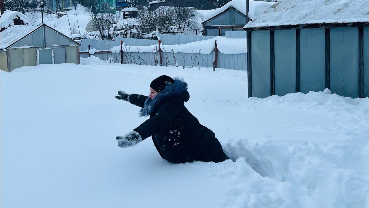 Покажу сколько снега навалило за 1 месяц. Сделала снежного ангела.