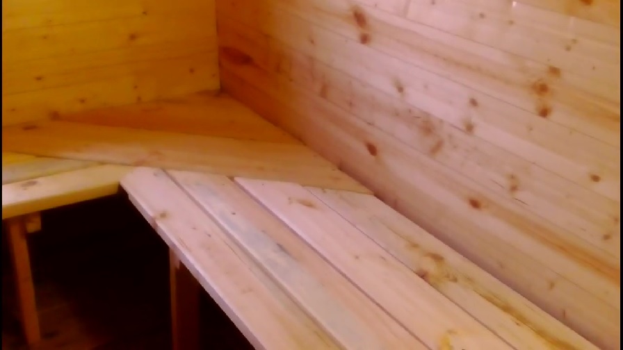 Скамью в бане мы сделали своими руками. Мы довольны своей работой