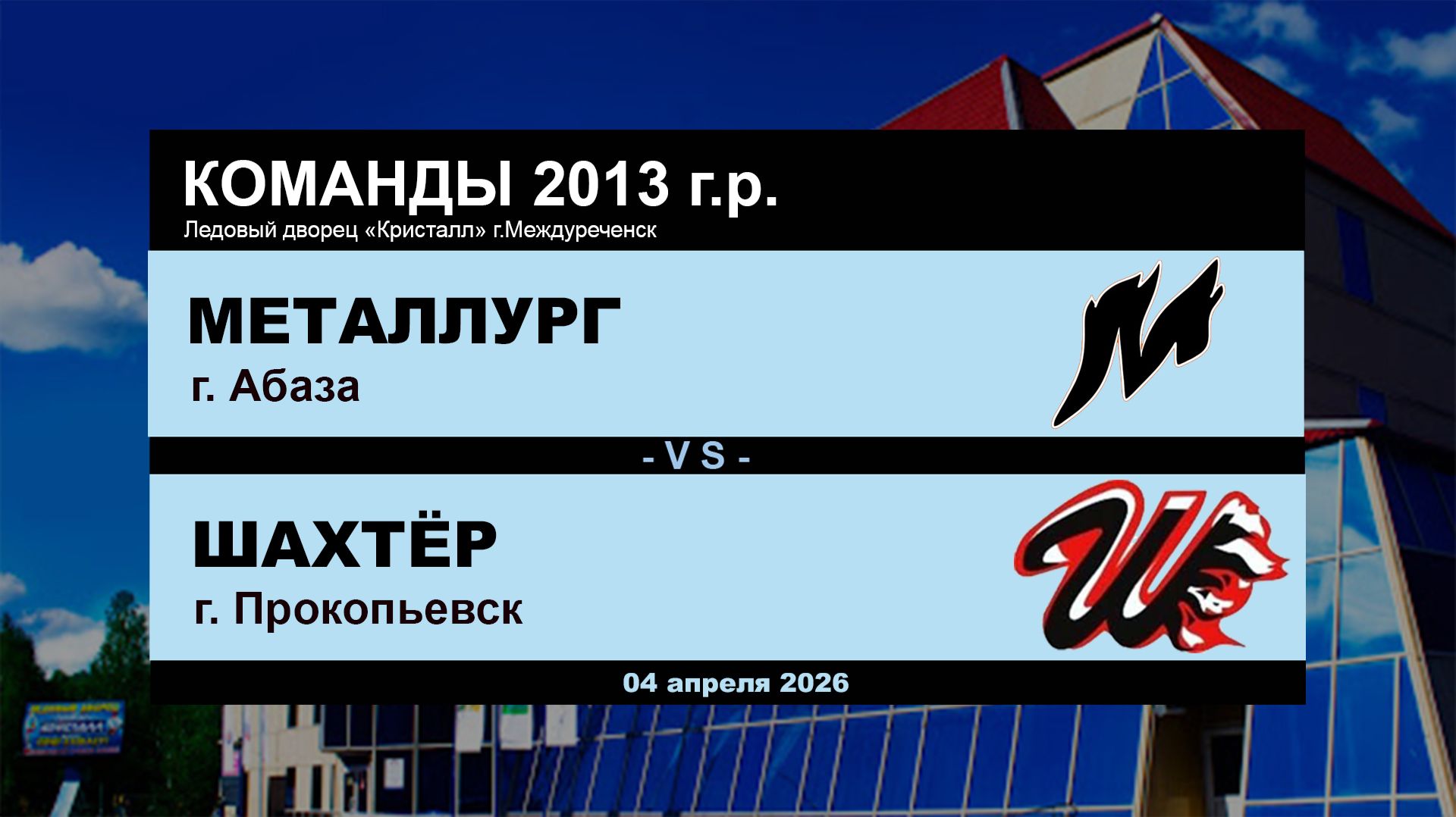 Хоккейная игра 04.04.2026 г. Команды 2013 г.р. Абаза - Прокопьевск Ледовый дворец "Кристалл" #Междуреченск #Металлург #Шахтёр