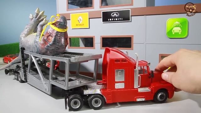 Мультик про Машинки. Зелёный трактор, Пожарная машина и Динозавр. МанкиМульт