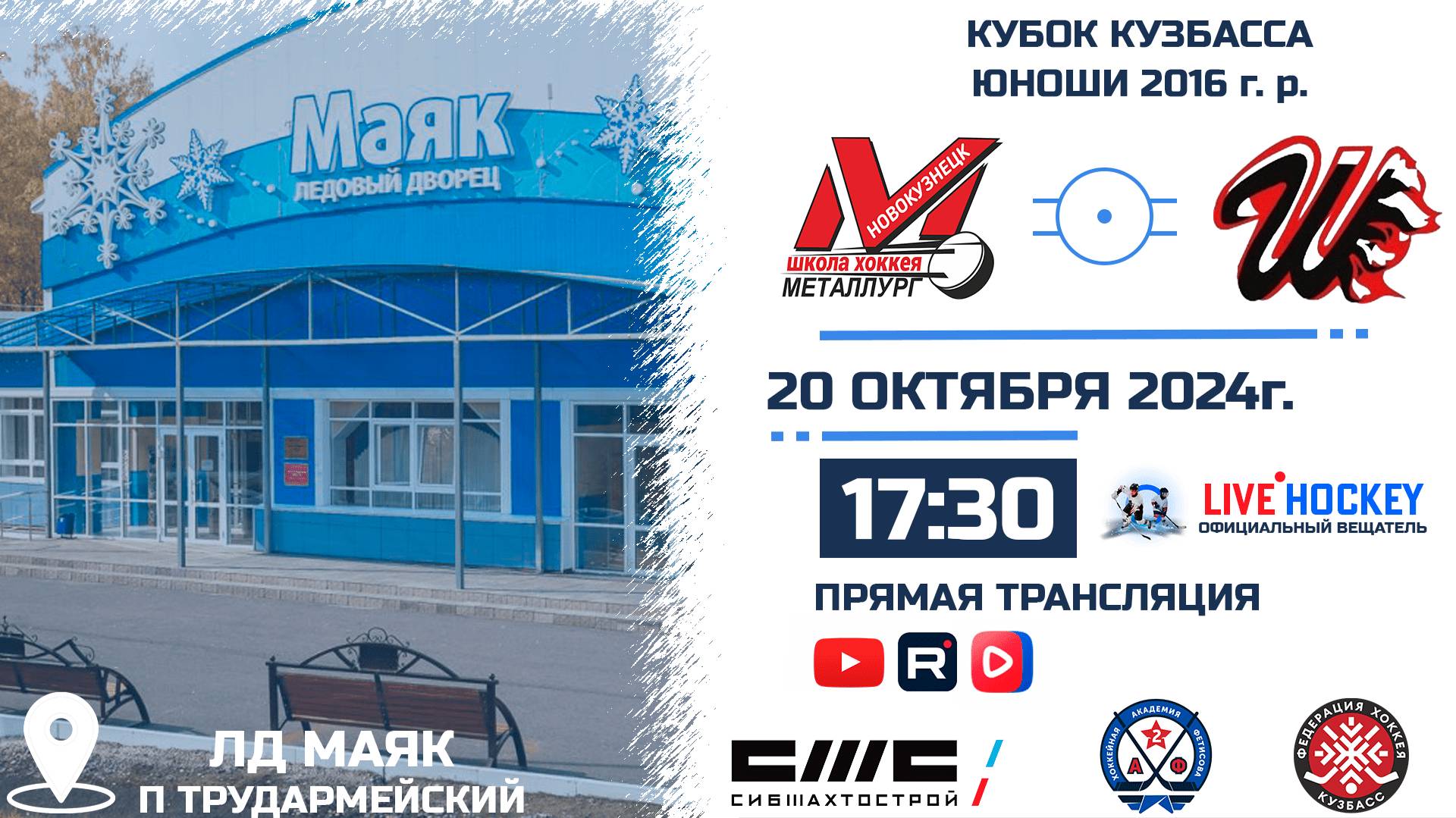 ПРЯМАЯ ТРАНСЛЯЦИЯ МАТЧА МЕТАЛЛУРГ 2016 (Новокузнецк)-ШАХТЁР 2016 (Прокопьевск). 20.10.2024г. в 17.30 КУБОК КУЗБАССА. Сезон 2024-2025. Комментаторы: Графика: С графикой (таймер, табло). Стадион: ЛД МАЯК п. Трудармейский. ТРАНСЛЯЦИЯ НА YouTube: https://youtube.com/live/MT-KmcAidN8?feature=share ТРАНСЛЯЦИЯ В СООБЩЕСТВЕ VK: