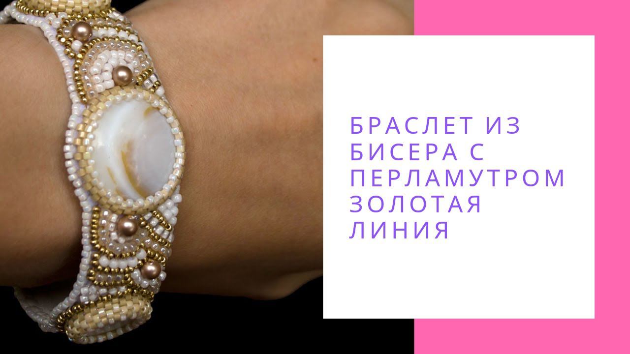 Браслет из бисера с перламутром Золотая линия. Белый золотой бежевый браслет. Купить браслет