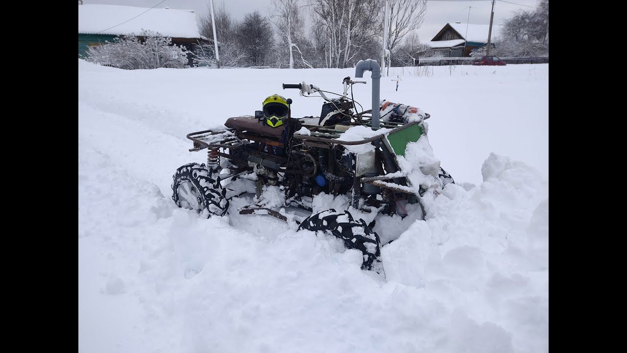 Чистка снега на самодельном квадроцикле