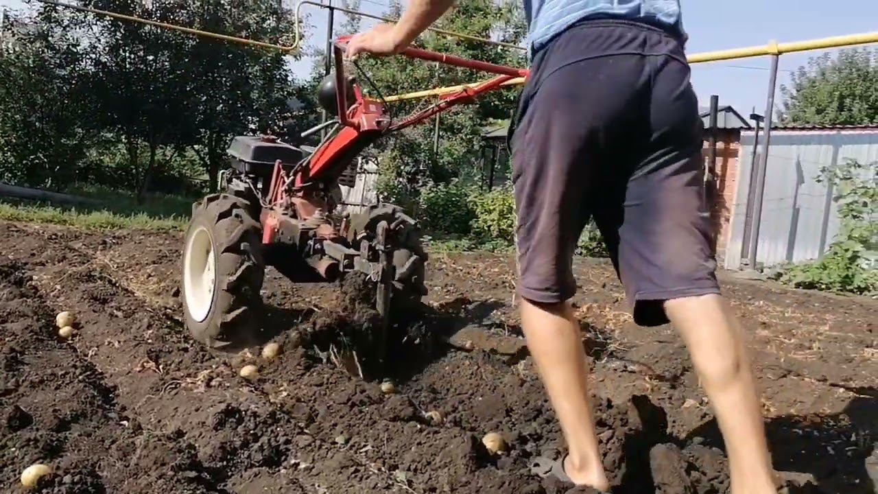 Это везде наверное, стоит жара и из-за жары все начали выкапывать картофель. Сегодня мы вытаскиваем картошку у тещи, а свою ещё не начали. На следующей неделе собираемся выкапывать картофель у себя, на этой, надо помочь тёще выкапывать картошку, 4ак говорится, своя успеет. Работаю с мотоблоком Агро и копаю веерной копалкой. Обзор работы в этом видео материале. #картошка #мотоблок #огород