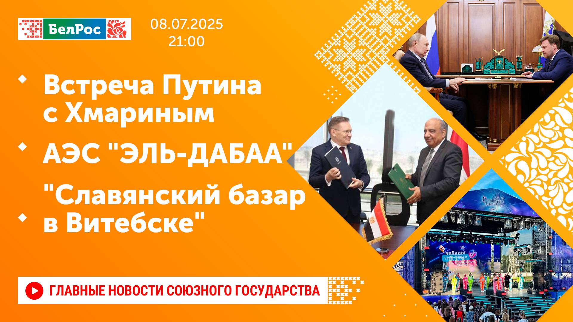 Встреча Путина с Хмариным / АЭС "ЭЛЬ-ДАБАА" / "Славянский базар в Витебске"