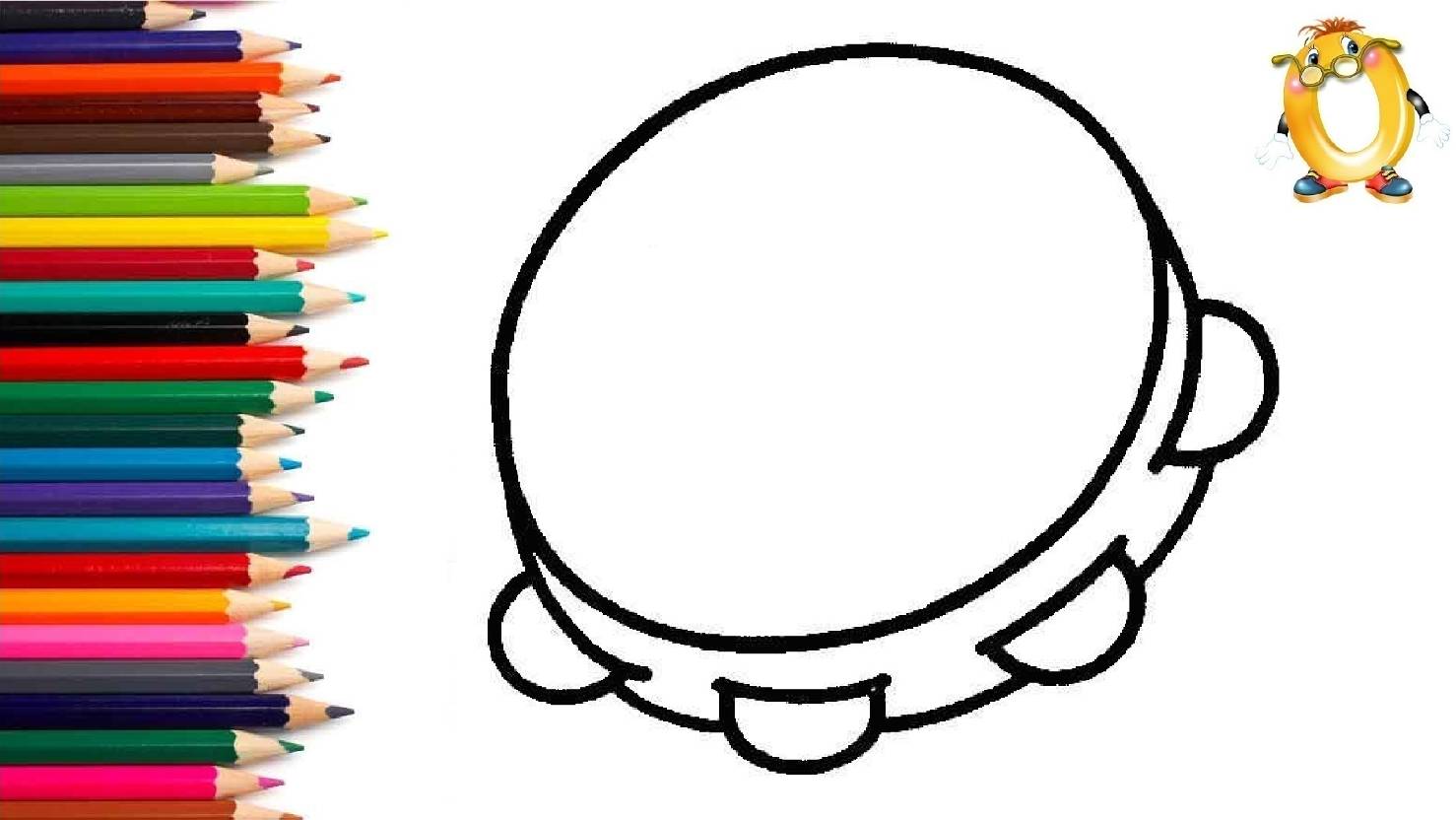 Мультик - раскраска для детей МУЗЫКАЛЬНЫЙ ИНСТРУМЕНТ. Учимся как рисовать БУБЕН // ОБУЧАШКА ТВ