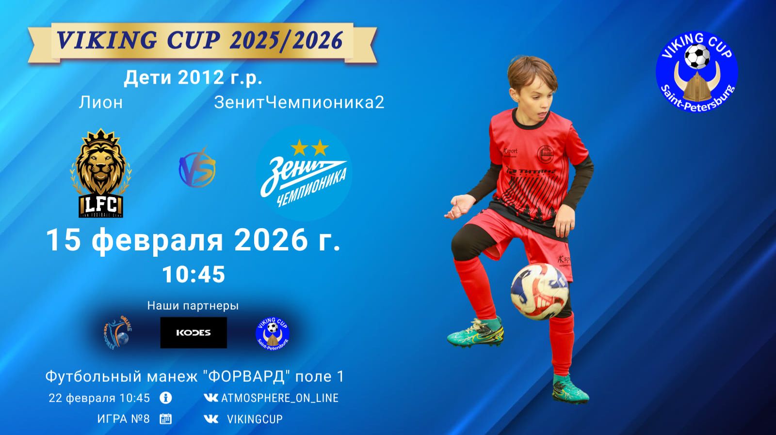 VIKING CUP среди команд 2012 г.р. (U14), Поле 1 22 февраля 2026 САНКТ-ПЕТЕРБУРГ, ФЦ "Форвард" Лион-ЗенитЧемпионика2/VIKING CUP, Игра №8, 22-02-2026 10:45