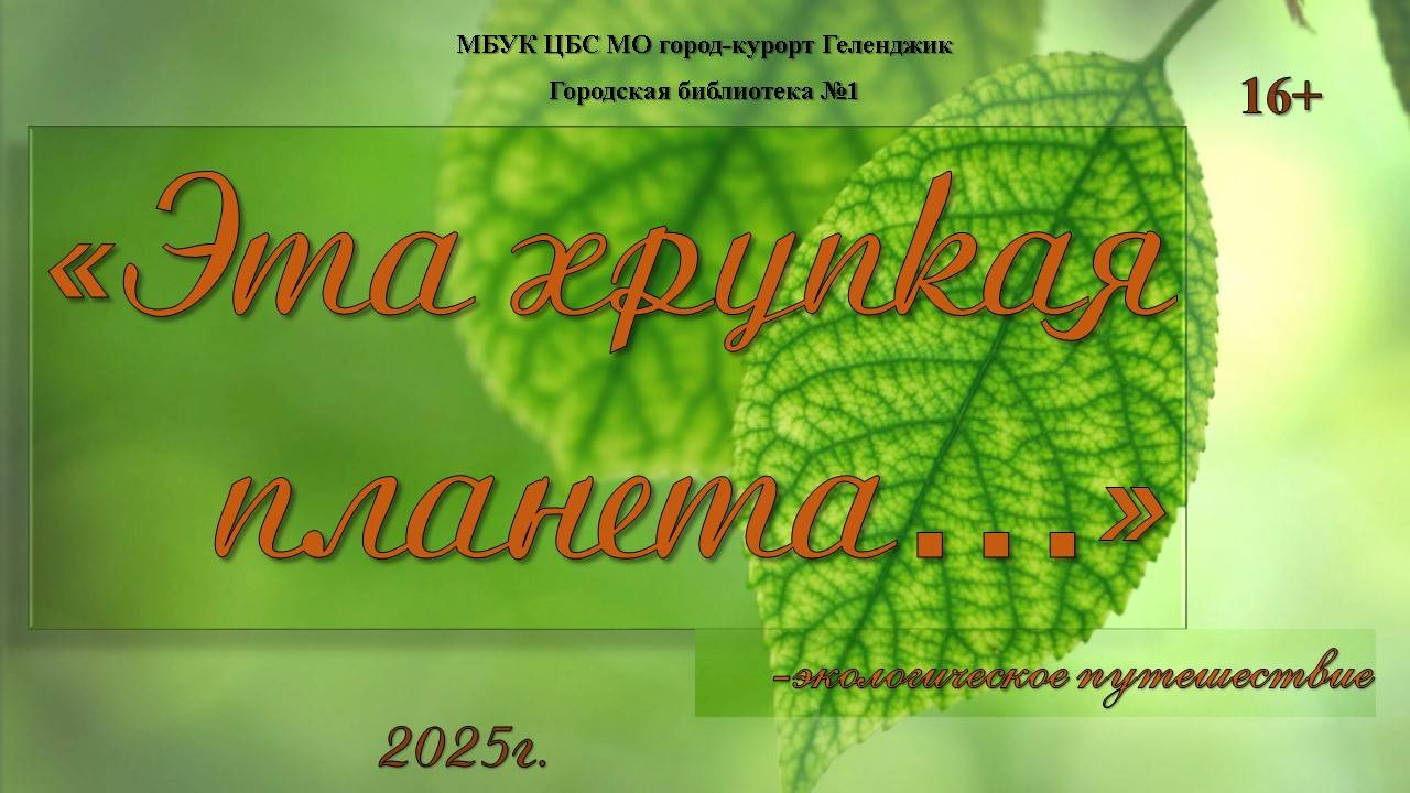 Городская библиотека №1 в рамках акции #ВМЕСТЕЯРЧЕ подготовила экологическое видео-путешествие «Эта хрупкая планета…» Возникновение экологических проблем в России, как и в других странах, связано с интенсивным влиянием человека на природу, которое приобрело опасный и агрессивный характер. Читателям напомнят о важности экологических проблем нашей планеты, и что бережливость природных ресурсов – главный источник богатства. Научившись беречь природу вокруг нас, мы постепенно научимся по-новому смотреть на свои отношения с окружающим миром. #ЧитающийГеленджик, #БиблиотекиГеленджика
