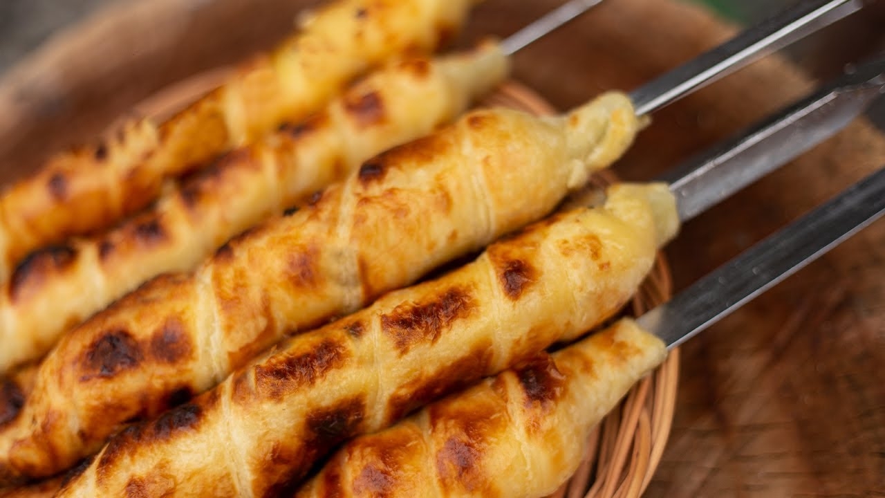 Хачапури на шампуре. Приготовлено на углях. Это нереально вкусный и малоизвестный рецепт хачапури (что очень несправедливо)! Слоеное или не слоеное тесто - 1 кг Сыр сулугуни - 1 кг #хачапури#хачапуринамангале#хачапуринашампурах