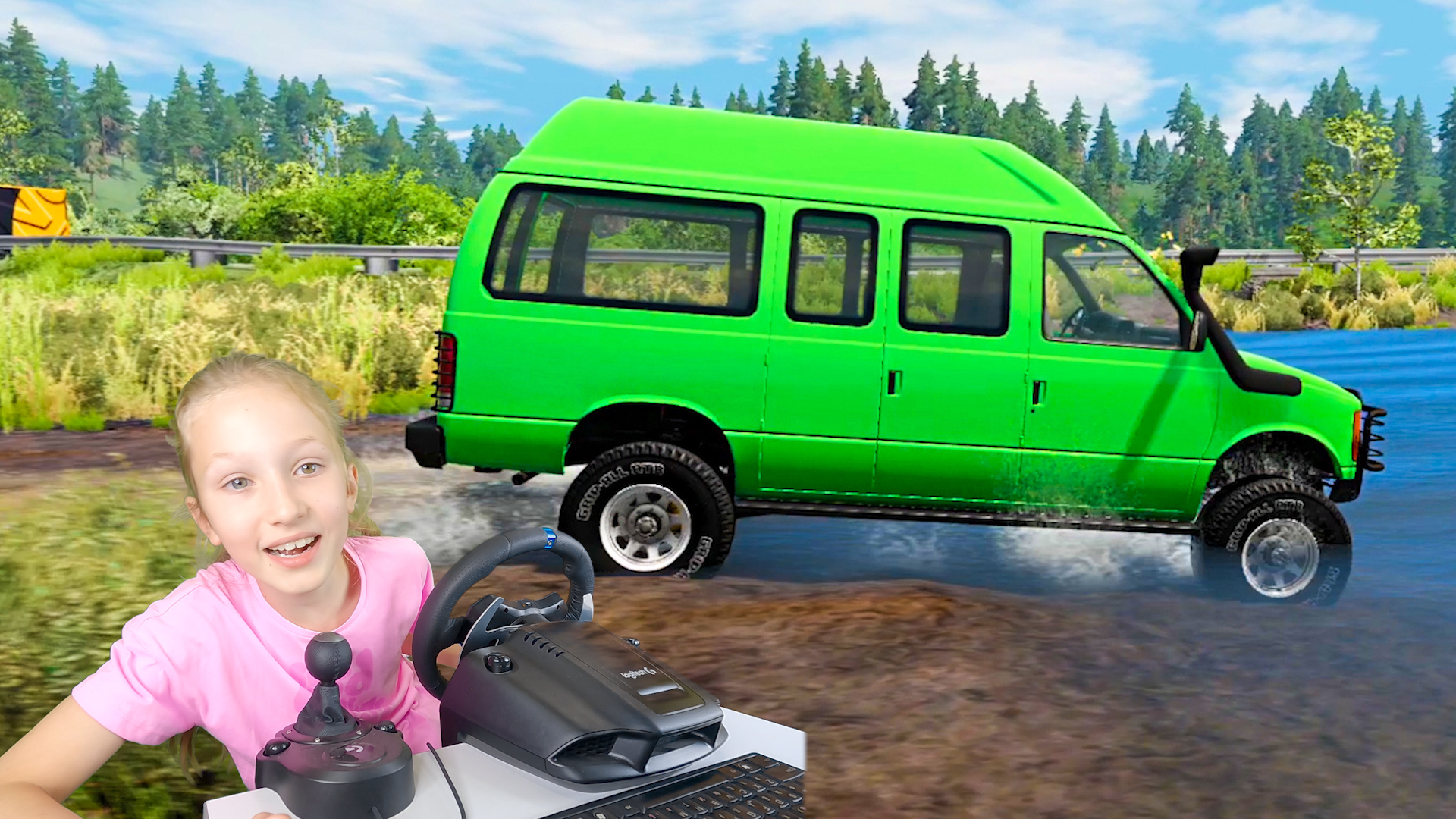 Дети и Машина. Диана ездит на машине по воде и бездорожью. Манкиту