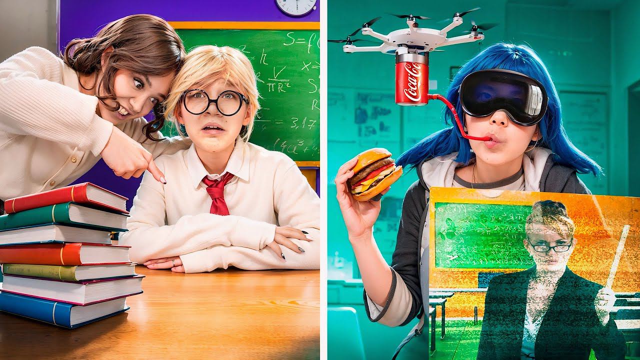 School then and now! Ladybug went to the past and Cat Noir went to the future.