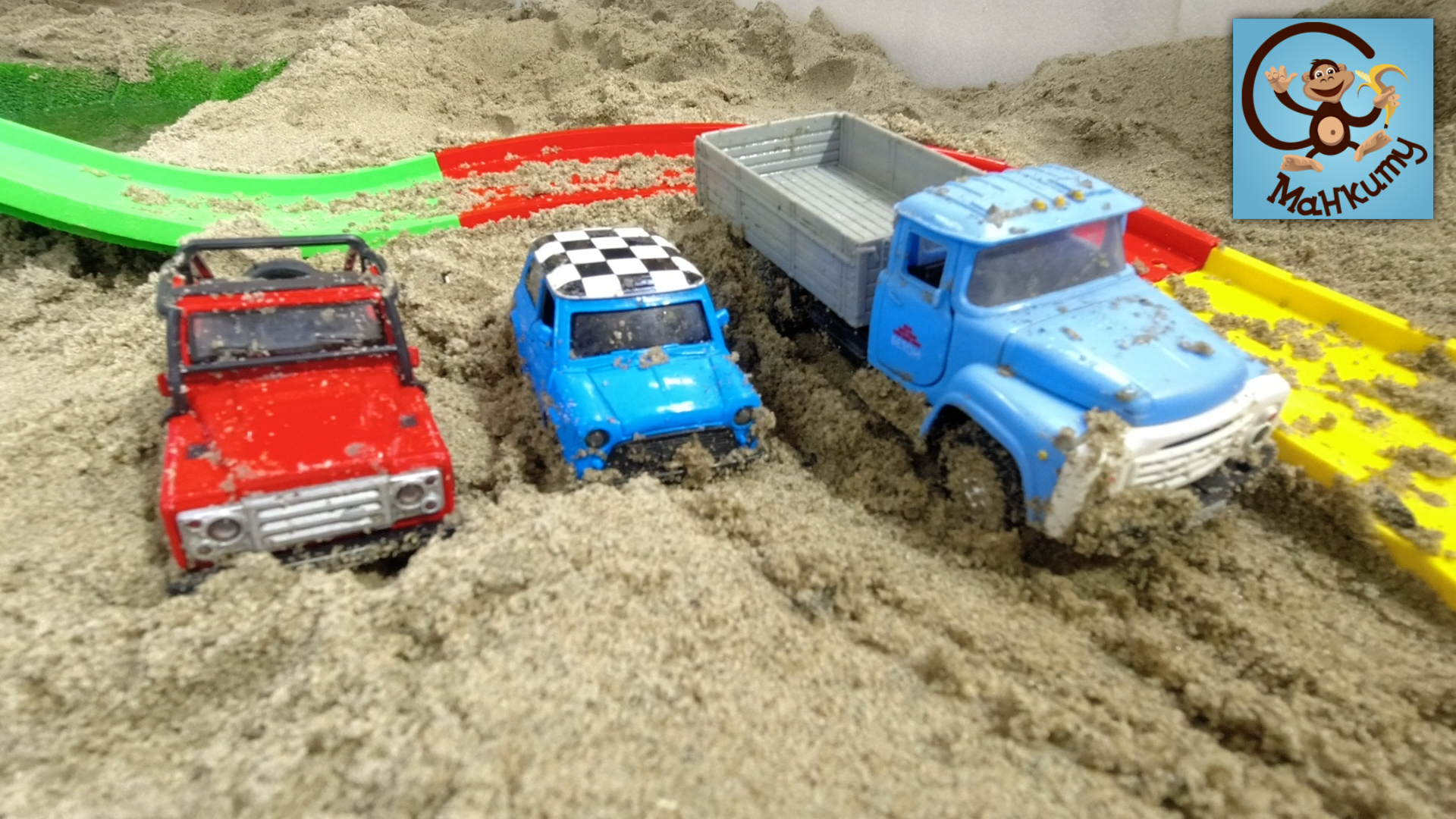 Строим дорогу и мост для Машинок Игрушек - Самосвал, Джип и Монстр Трак. Манкиту
