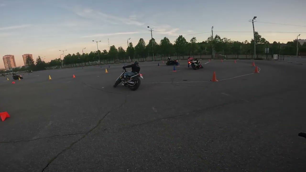 Тренировочная трасса мотоджимханы - фигурное управление мотоциклом дисциплина мотоспорт. Казань 27 мая 2024
